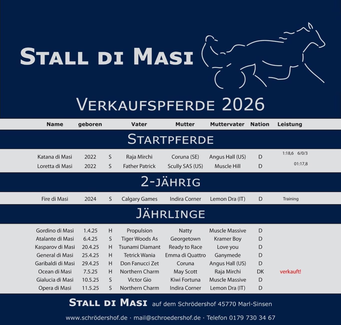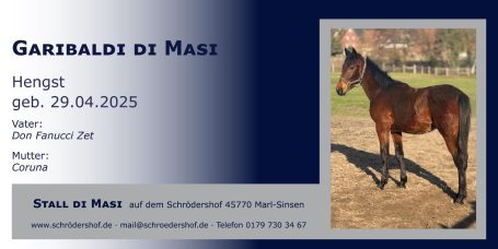 Der Stall di Masi ist ein bedeutender Ort in der Züchtergemeinschaft, der sich auf die Zucht qualitativ hochwertiger Pferde spezialisiert hat. Hier vereinen sich erfahrene Züchter, die ihr Wissen und ihre Leidenschaft für die Pferdezucht teilen. Die Gemeinschaft fördert den Austausch von Ideen und Techniken, um die Genetik und die Leistung der gezüchteten Tiere kontinuierlich zu verbessern. Durch Veranstaltungen und Seminare stärkt die Züchtergemeinschaft den Zusammenhalt und das Wissen um züchterische Herausforderungen, die in der heutigen Zeit von großer Bedeutung sind.