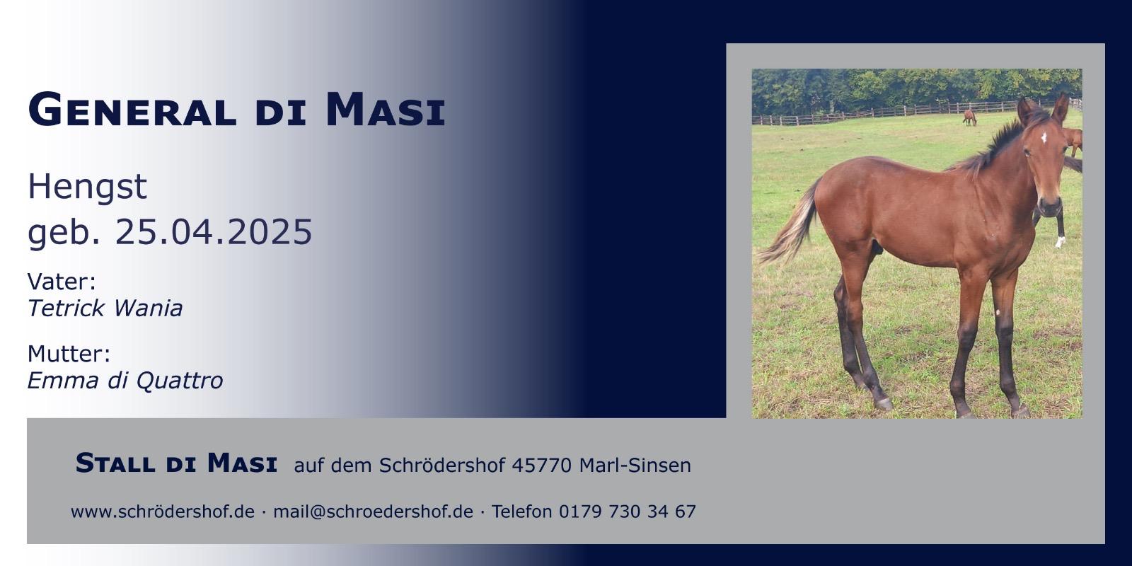 Der Stall di Masi ist ein bedeutender Ort in der Züchtergemeinschaft, der sich auf die Zucht qualitativ hochwertiger Pferde spezialisiert hat. Hier vereinen sich erfahrene Züchter, die ihr Wissen und ihre Leidenschaft für die Pferdezucht teilen. Die Gemeinschaft fördert den Austausch von Ideen und Techniken, um die Genetik und die Leistung der gezüchteten Tiere kontinuierlich zu verbessern. Durch Veranstaltungen und Seminare stärkt die Züchtergemeinschaft den Zusammenhalt und das Wissen um züchterische Herausforderungen, die in der heutigen Zeit von großer Bedeutung sind.